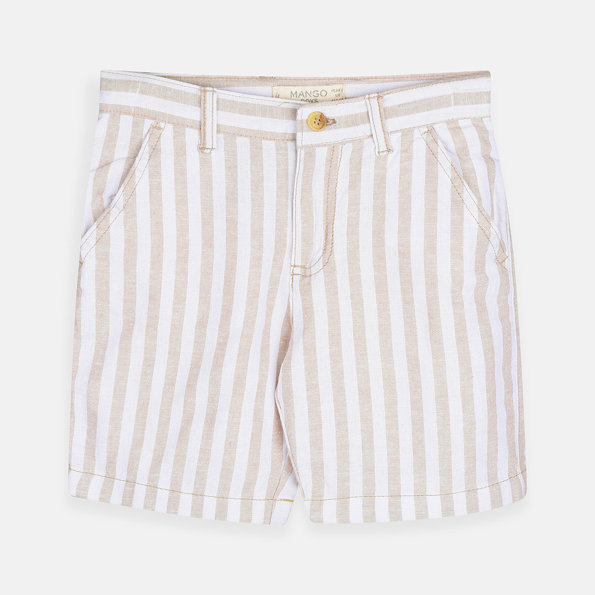 - MNG White & Brown Stripe Cotton Shorts 4478