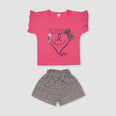 MNXY Shocking Pink Bow Heart Print 2 Piece Set 2273