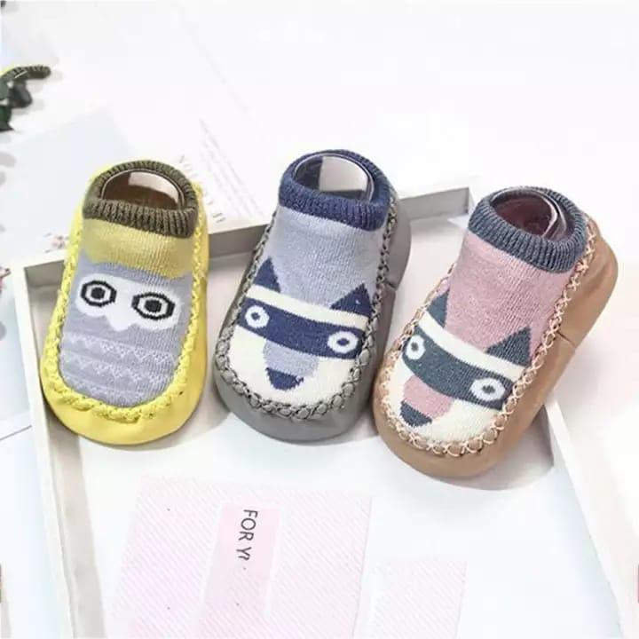 - Mustard Bottom Grey Owl Face Socks Booties 4525