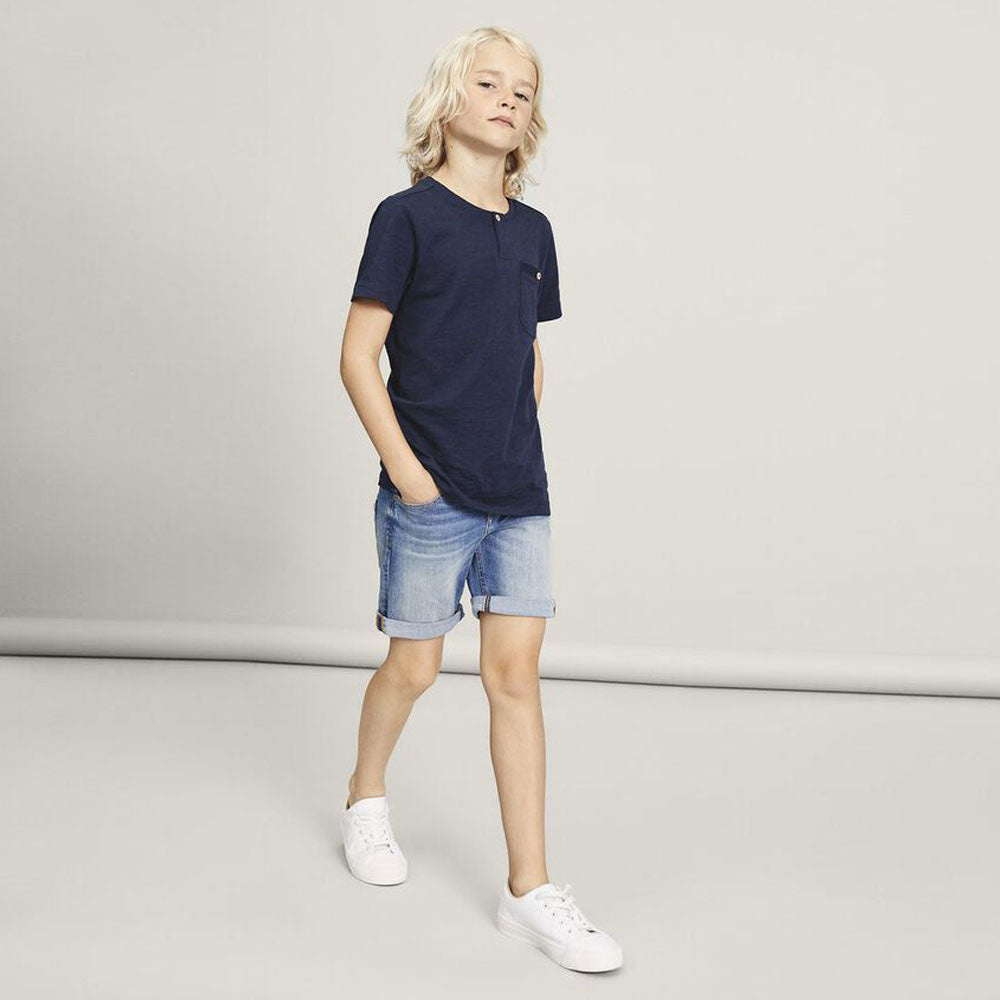N It Back Pocket Embroidery Rough Side Mid Blue Denim Shorts 3968