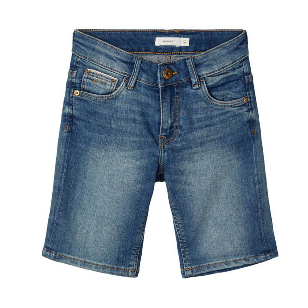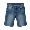 - N It Back Pocket Embroidery Rough Side Mid Blue Denim Shorts 3968