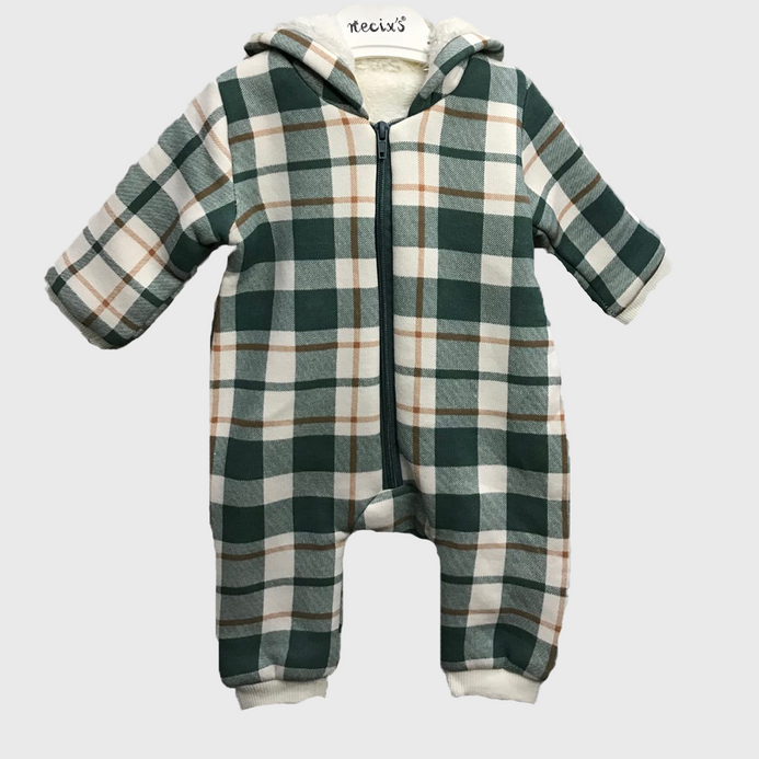 - NCX Green & Cream Inside Warm Fur Hoodie Romper 10313