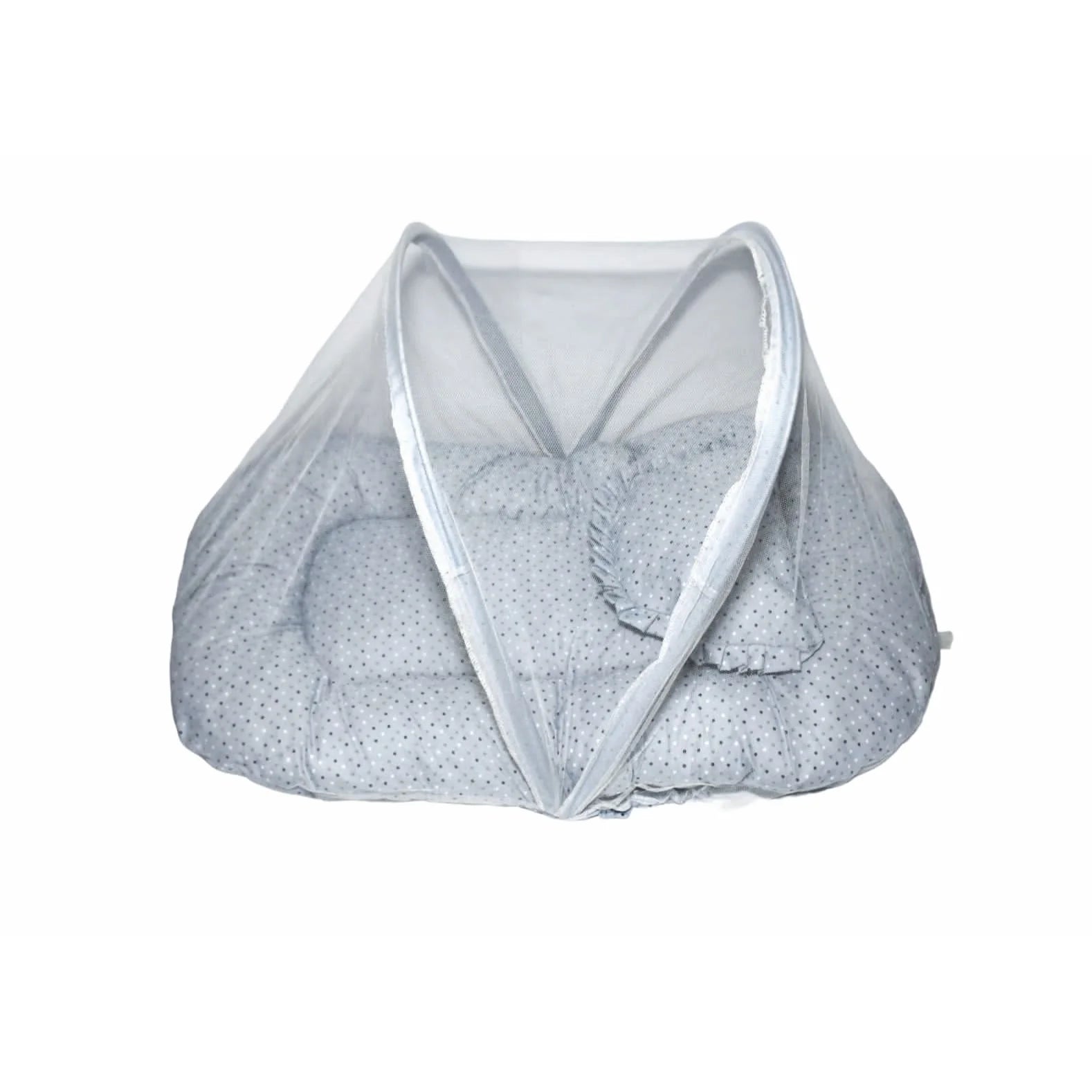 - New Born Grey Polka Dots Portable Soft Bed With Mosquito Net 10827