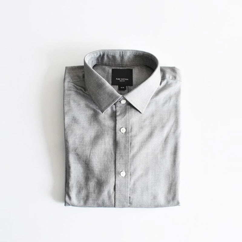 - NXT Chambray Pure Cotton Slim Fit Silver Casual Shirt