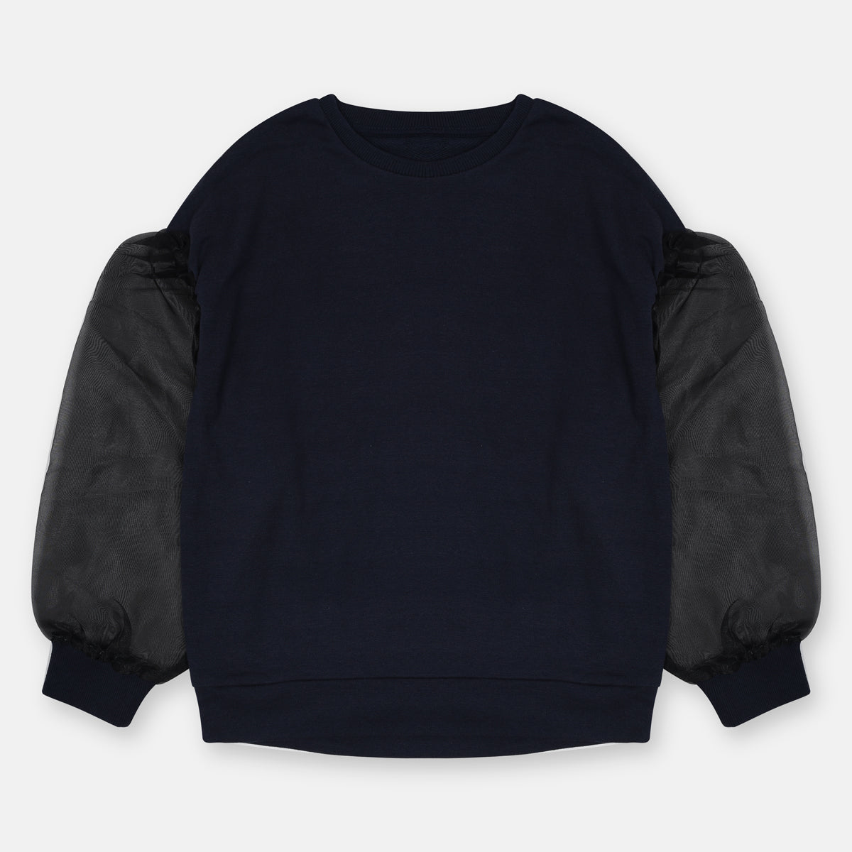 NTMG Dark Blue Net Style Sleeves Terry Sweatshirt 5031