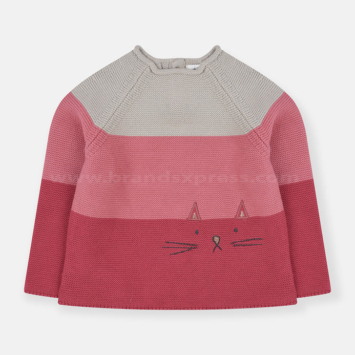 NXT Color Block Embroidered Cat Pink Sweater 7792