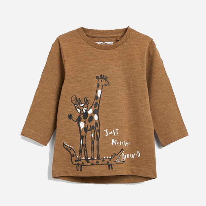 NXT Just Messin Around Giraffe Brown Full Sleeves Tshirt 7720