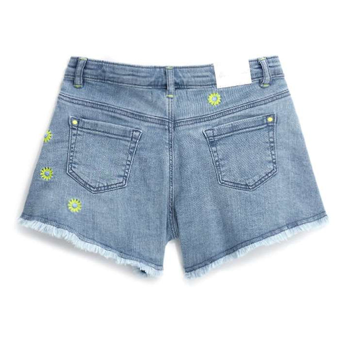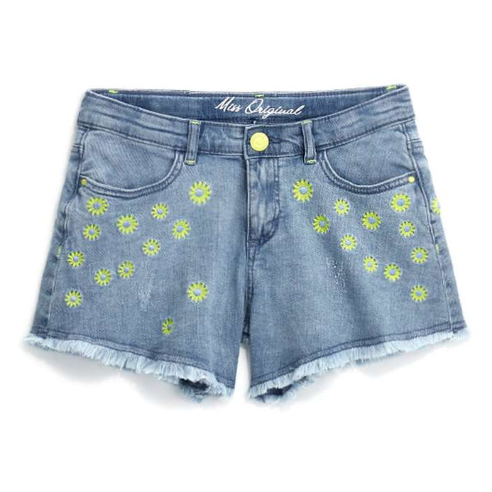 OM All Over Embroided Yellow Flowers Light Blue Denim Shorts 13313