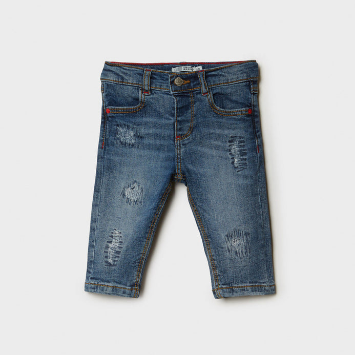 - OM Mid Blue Ripped Patch Denim 1287