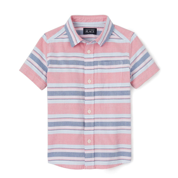 - PLC Blue White Pink Stripe Half Sleeves Casual Shirt 7104