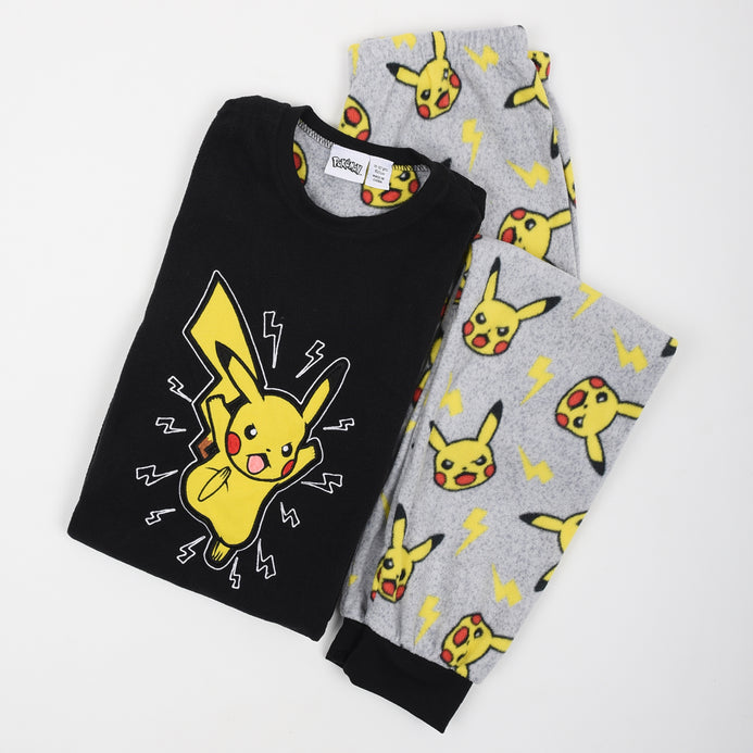 - PMK Pikachu Emberioded Black Fluffy Fleece Two Piece Trouser Set 10235