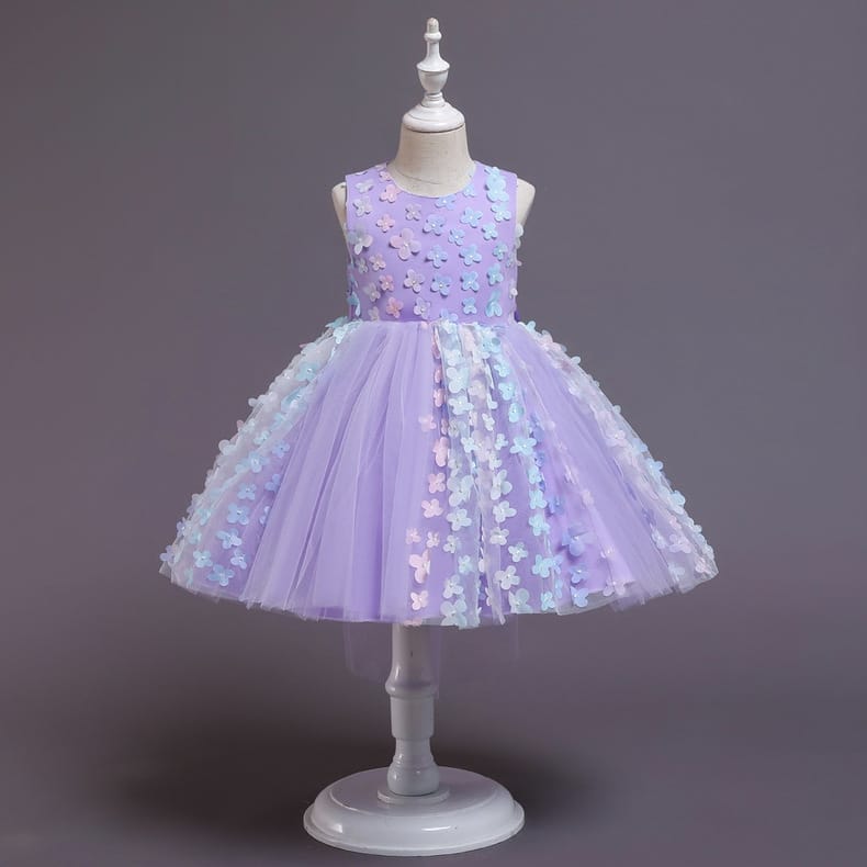 PP All Over Multi Aplic Flower Lavender Fancy Frock 11016