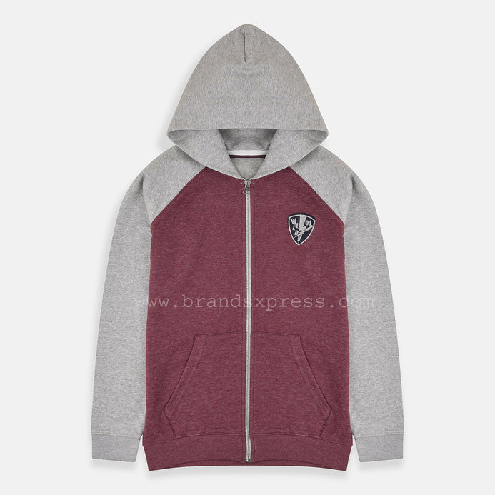 - QS Wild Patch Raglan Sleeves Maroon Zipper Hoodie 3131