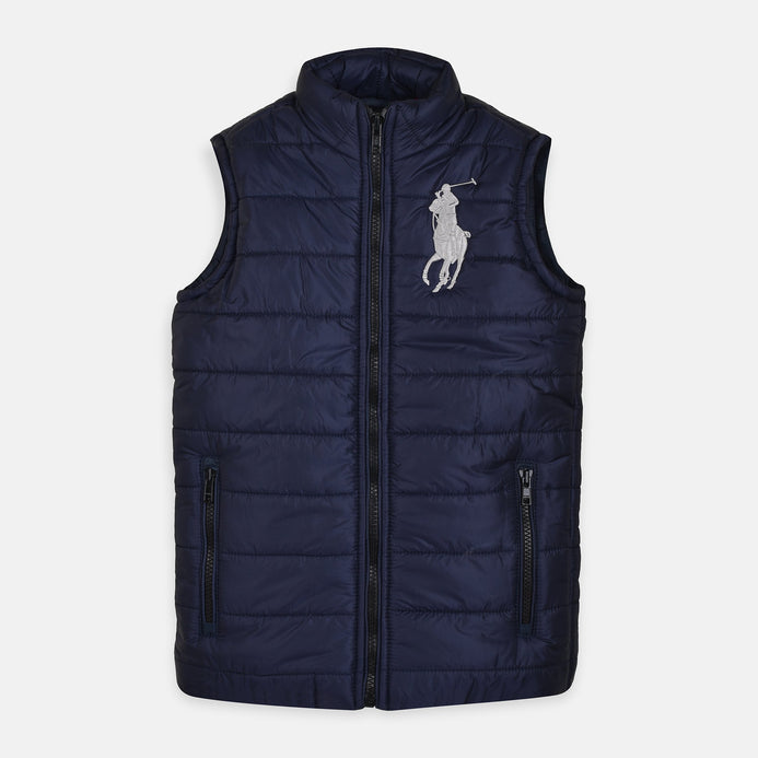 R.L White Pony Sleeveless Navy Blue Puffer Jacket 3187