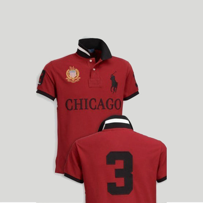 Men Big Pony Chicago Red Polo Black Collar