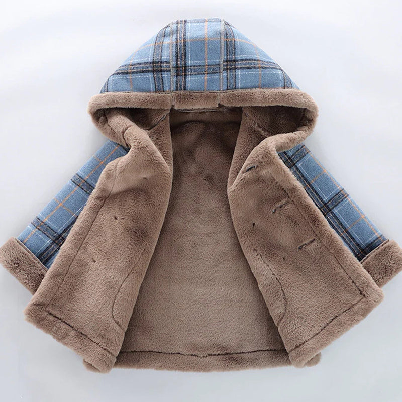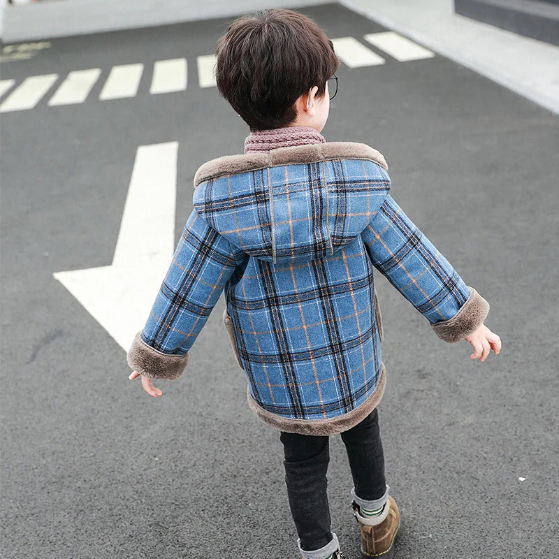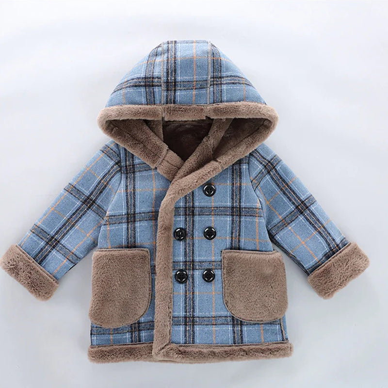 RXKZ 6 Buttons Fur Pockets Check Blue Inside Fur Warm Coat 10530