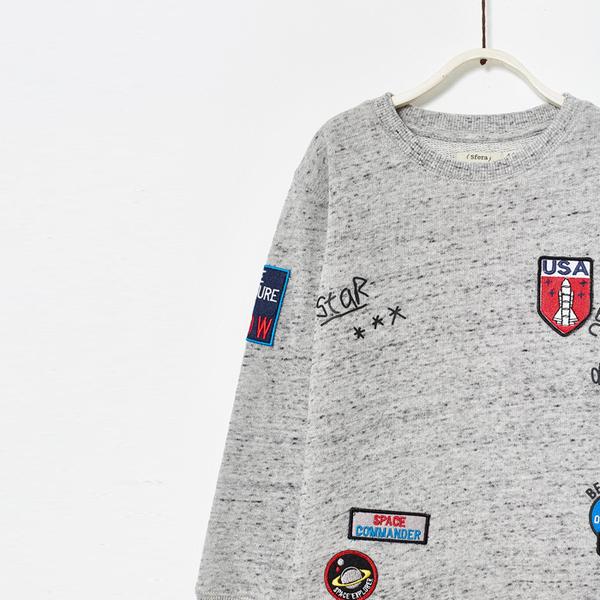 SFR Grey Be Curious Patch Sweatshirt For Boys
