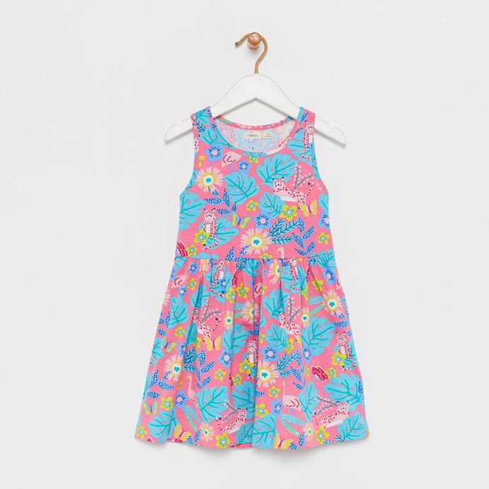 SFR Cat and Leaves Pink Sleeveless Frock 2225