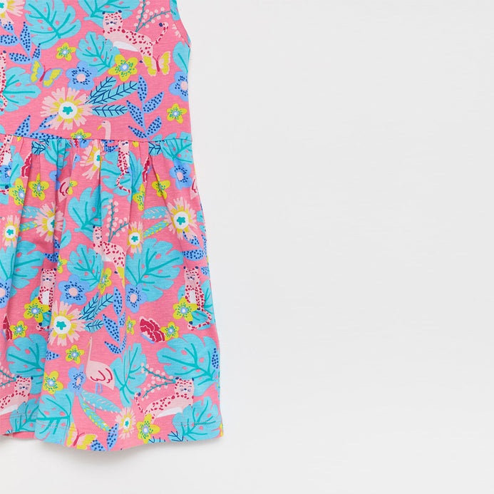 - SFR Cat and Leaves Pink Sleeveless Frock 2225
