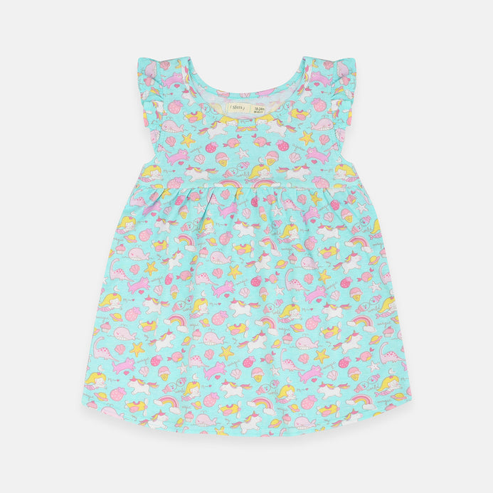 - SFR Magical cats and Unicorns Light Blue Sleeveless Frock 2219