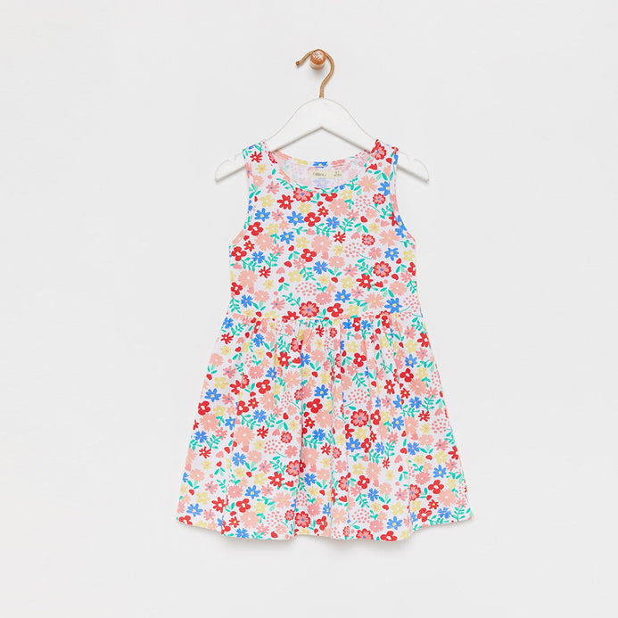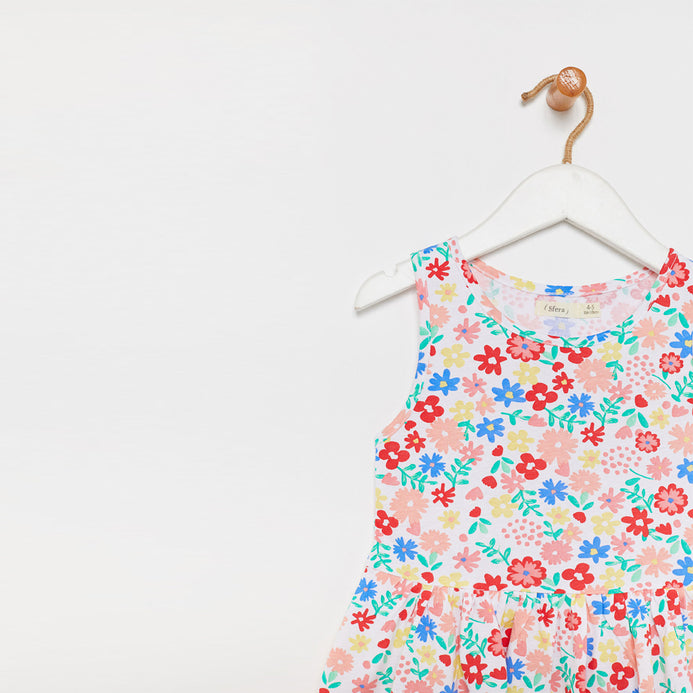 SFR Red & Blue Flowers White Sleeveless Frock 2222