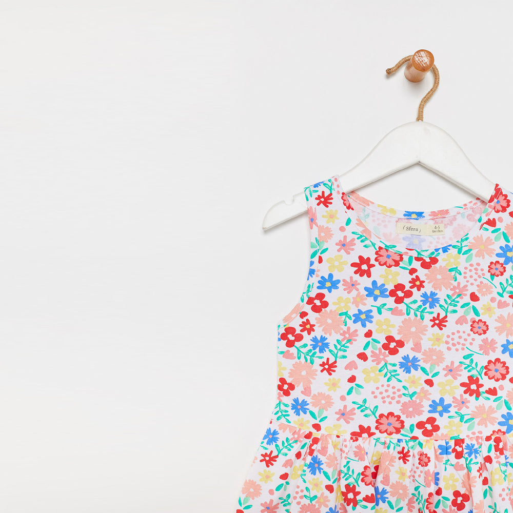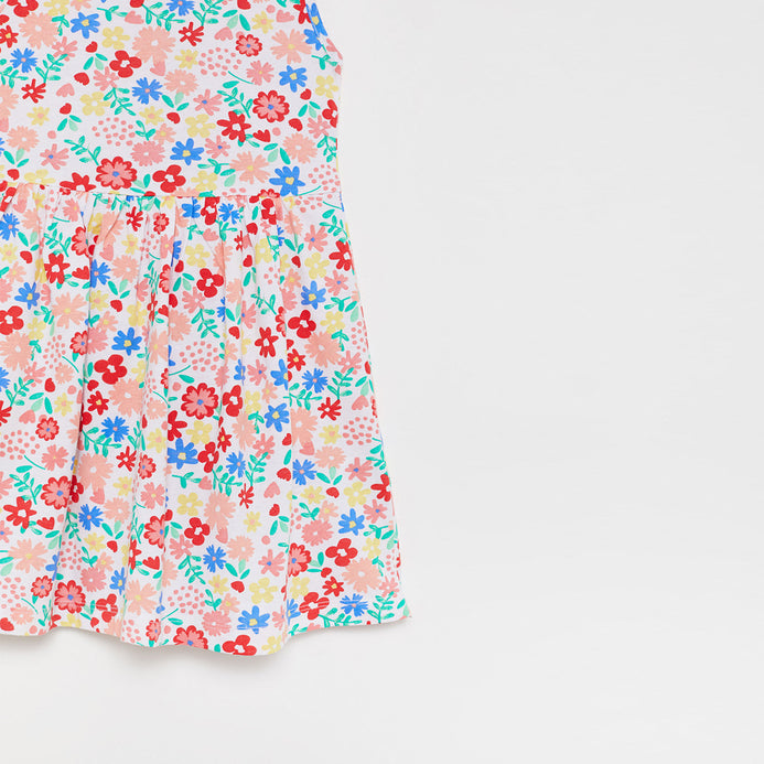 - SFR Red & Blue Flowers White Sleeveless Frock 2222