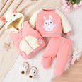 SHEN kids Cute Rabbit Embroided Furr Sleeves Style Sweatshirt & Trouser Fleece with Zipper Hoodie 3 Piece Set 13989