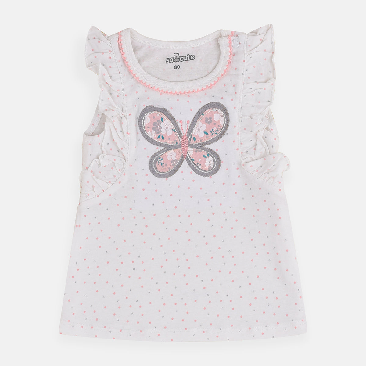 SC Butterfly Applic Frill Sleeves White Top 3880