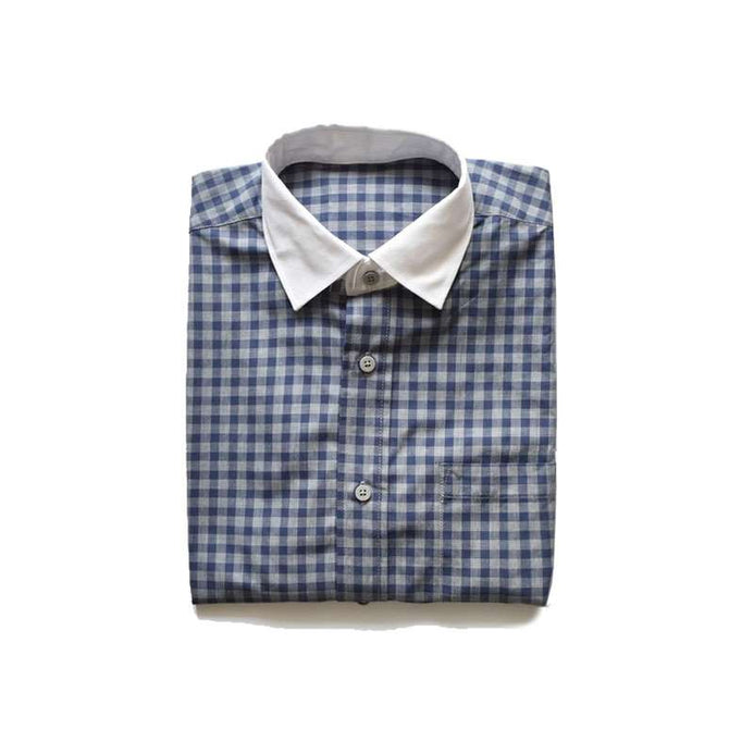 - SOL White Collar Dark Blue Small Check Cotton Casual Shirt