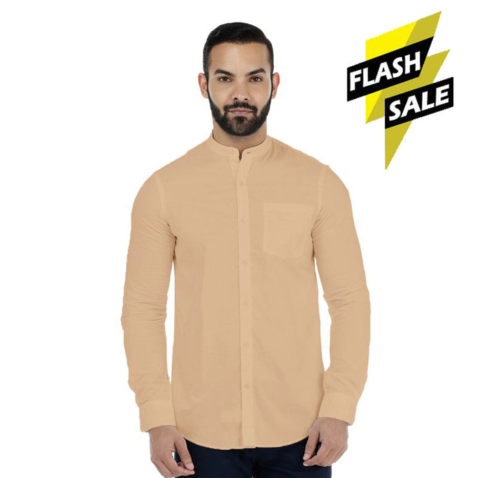 - SPL Basics Mandarin Collar Linen Casual Shirt Khaki 420