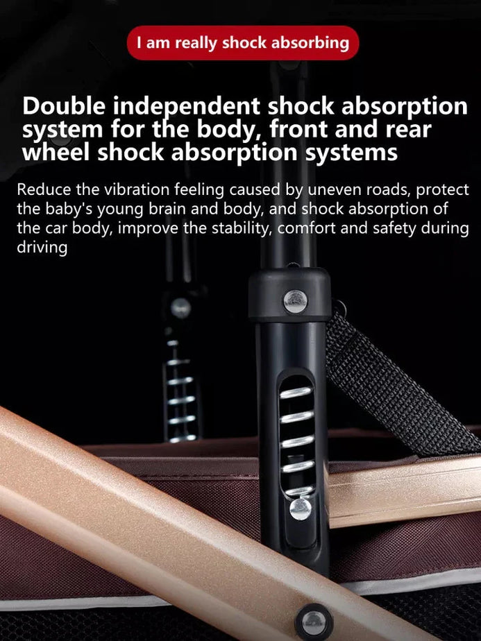 Give your baby a comfortable ride! This baby stroller is adjustable so that baby can sit or lie down. The handle is also adjustable so that your baby can face you or face the street, the chair is equipped with a reversible stroller seat, oriented forwards or backwards. The design of the structure adds security. With explosion-proof wheels and the material is super natural rubber. Also pedal brake, safer. Adjustable non-slip handle, you can choose the most comfortable height to push. And with adjustable ceiling, you can adjust it according to different weather conditions.