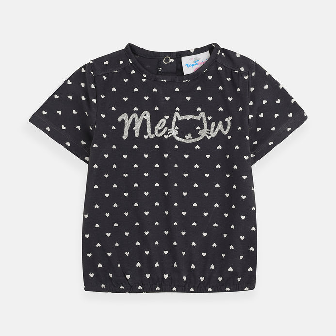 TP Glitter Meow Hearts Print Grey Top 3739