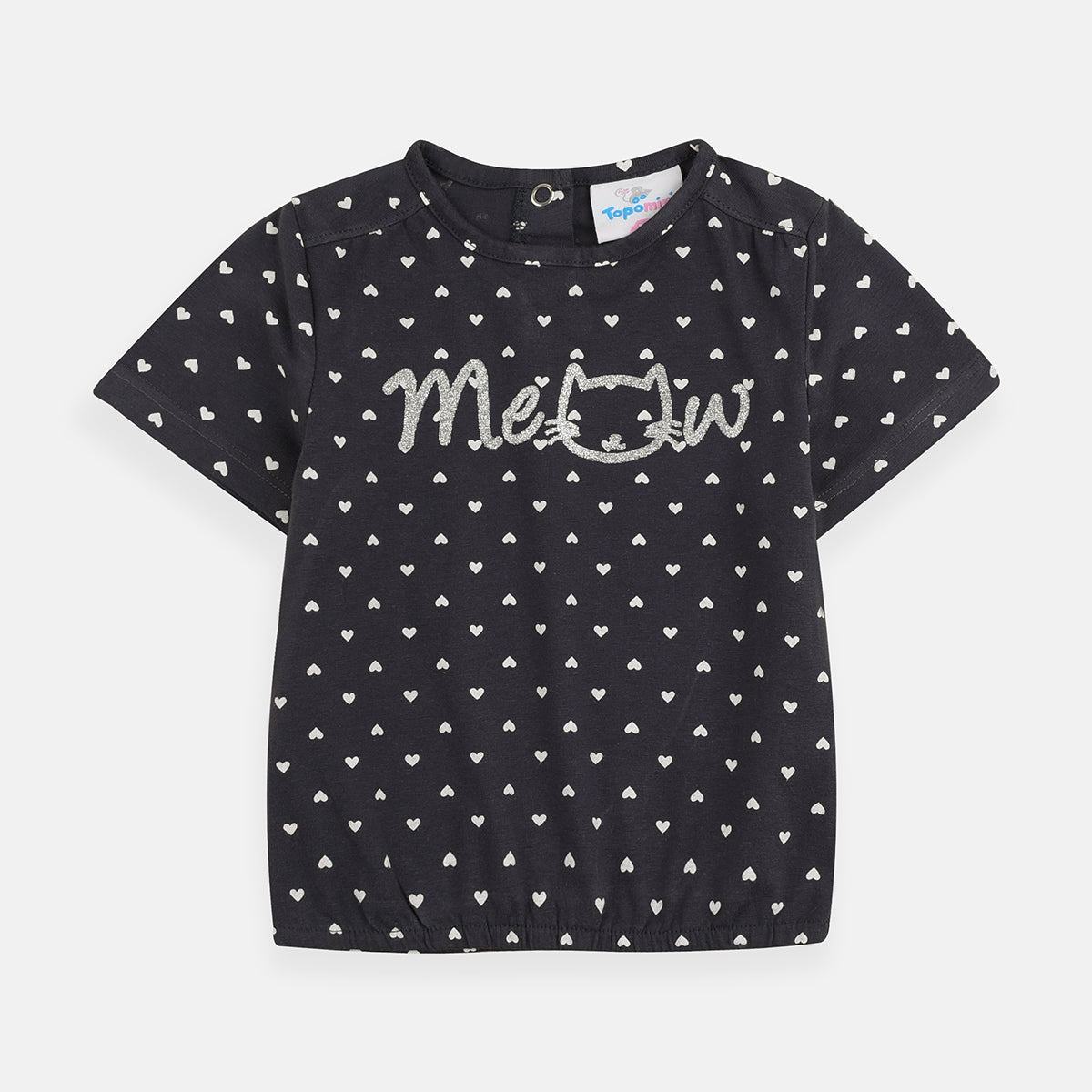 - TP Glitter Meow Hearts Print Grey Top 3739