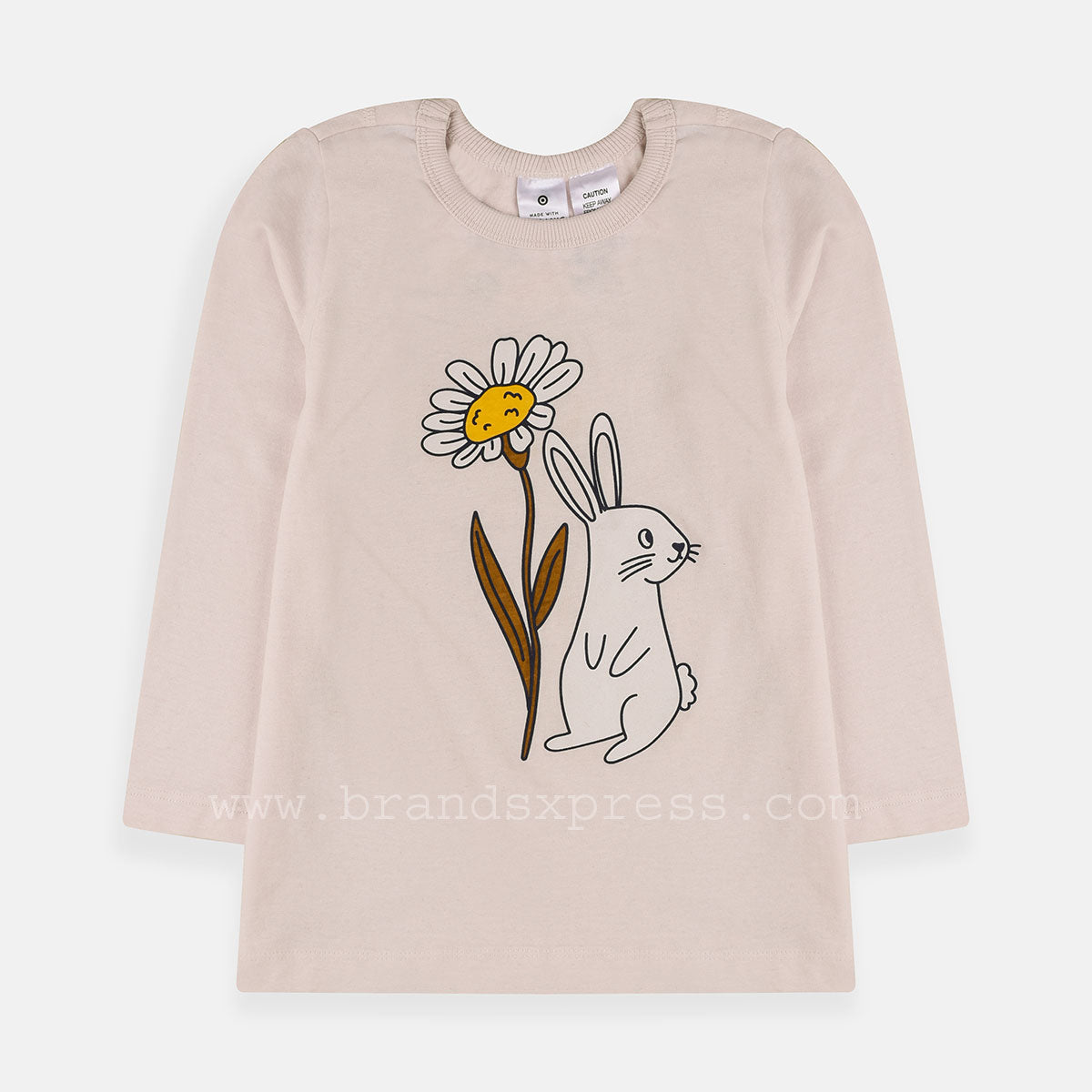 - TRG Rabbit & Flower Organic Cotton Powder Pink Full Sleeves Tshirt 7609