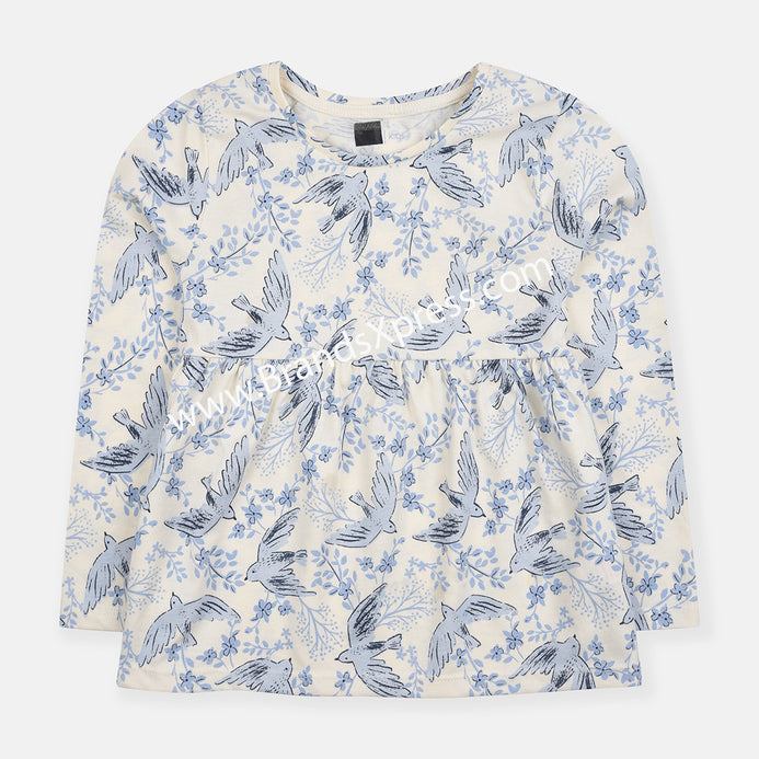 TU Flowers & Birds Print full Sleeves Off White Short Flare Top 9790
