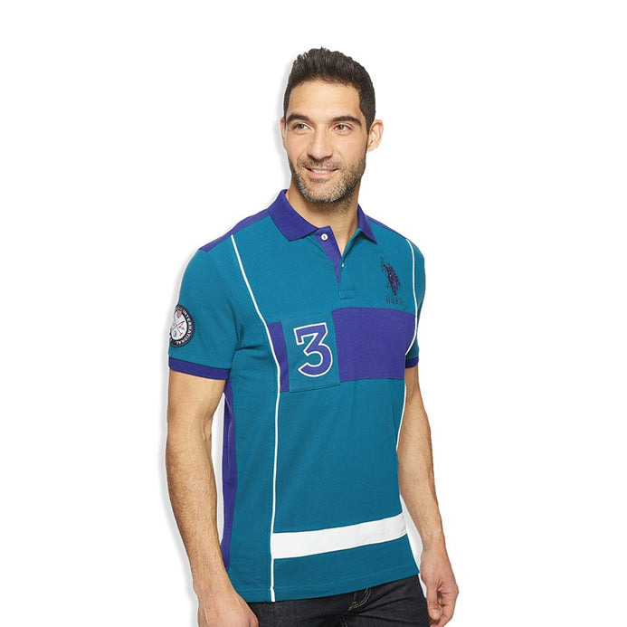 U.S Polo Assn Slim Fit Color Block Blue Polo Shirt