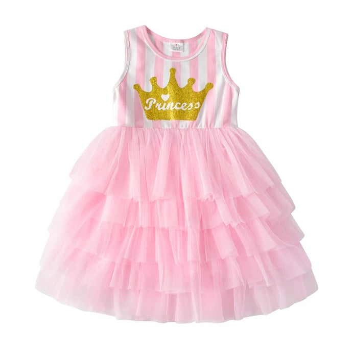 VKT Crown Princess Pink Stripes Net Fancy Frock 8728