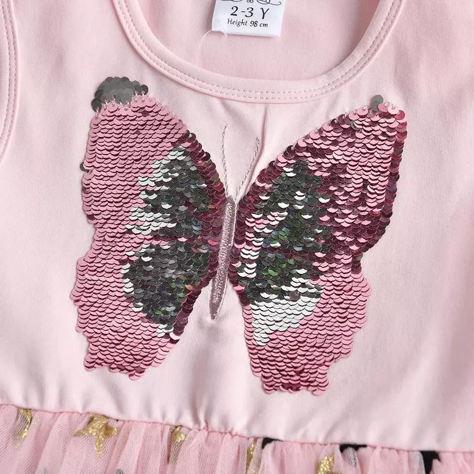 VKT Reversible Butterfly Sequin Star Net Bottom Pink Frock 7493