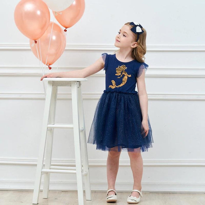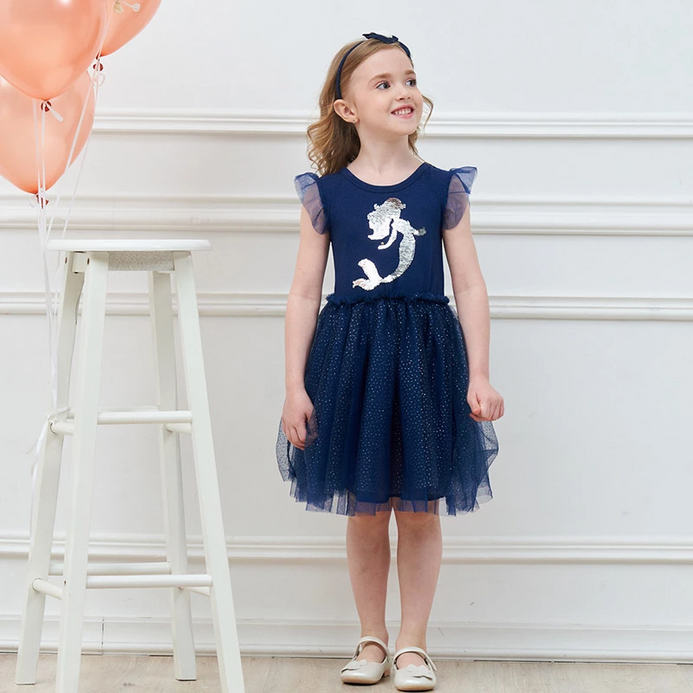VKT Reversible Sequence Mermaid Shinning Bottom Navy Blue Frock 6042