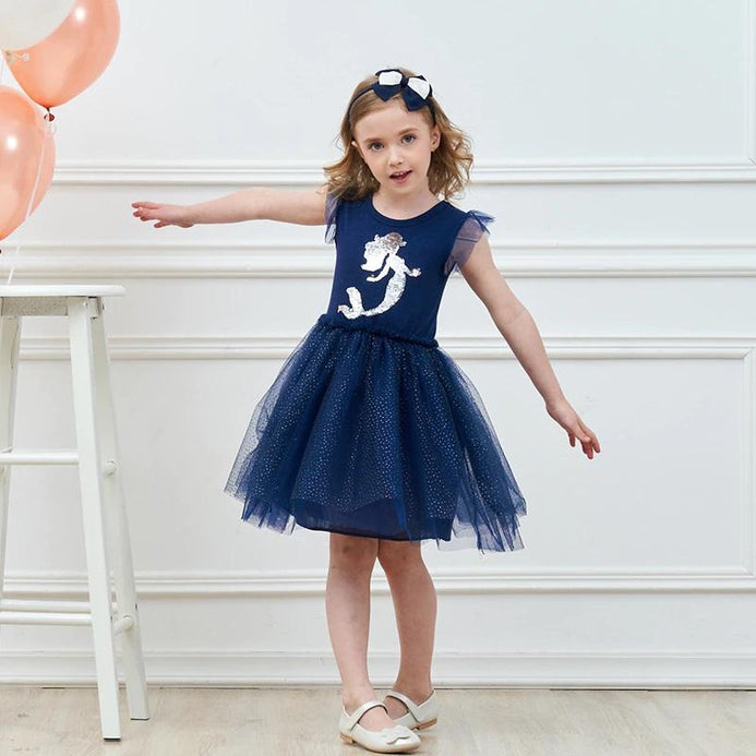 - VKT Reversible Sequence Mermaid Shinning Bottom Navy Blue Frock 6042