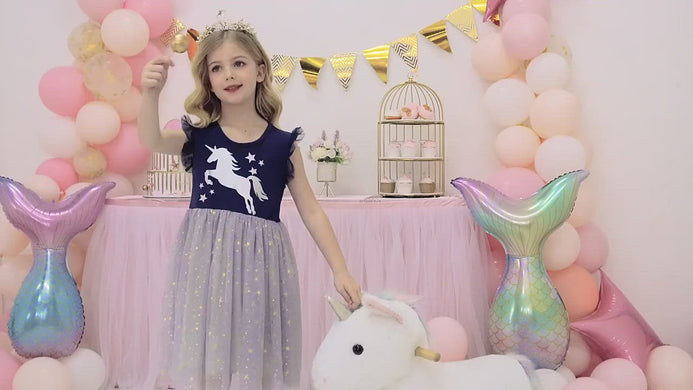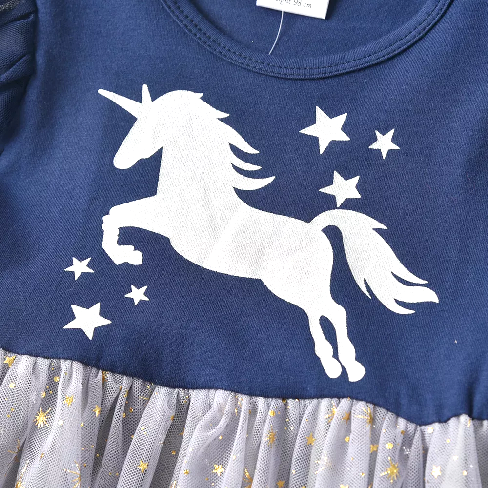 - VKT Star Unicorn Print Grey Bottom Blue Frock 6046
