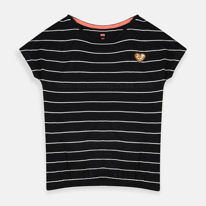 Be Awesome Sequence Heart White & Black Stripes Top 7252