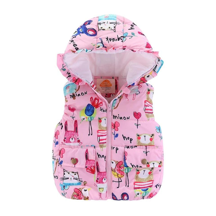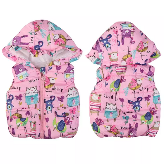 - Y5 Animals & Birds Voices Sleeveless Hooded Soft Pink Puffer Jacket 7662