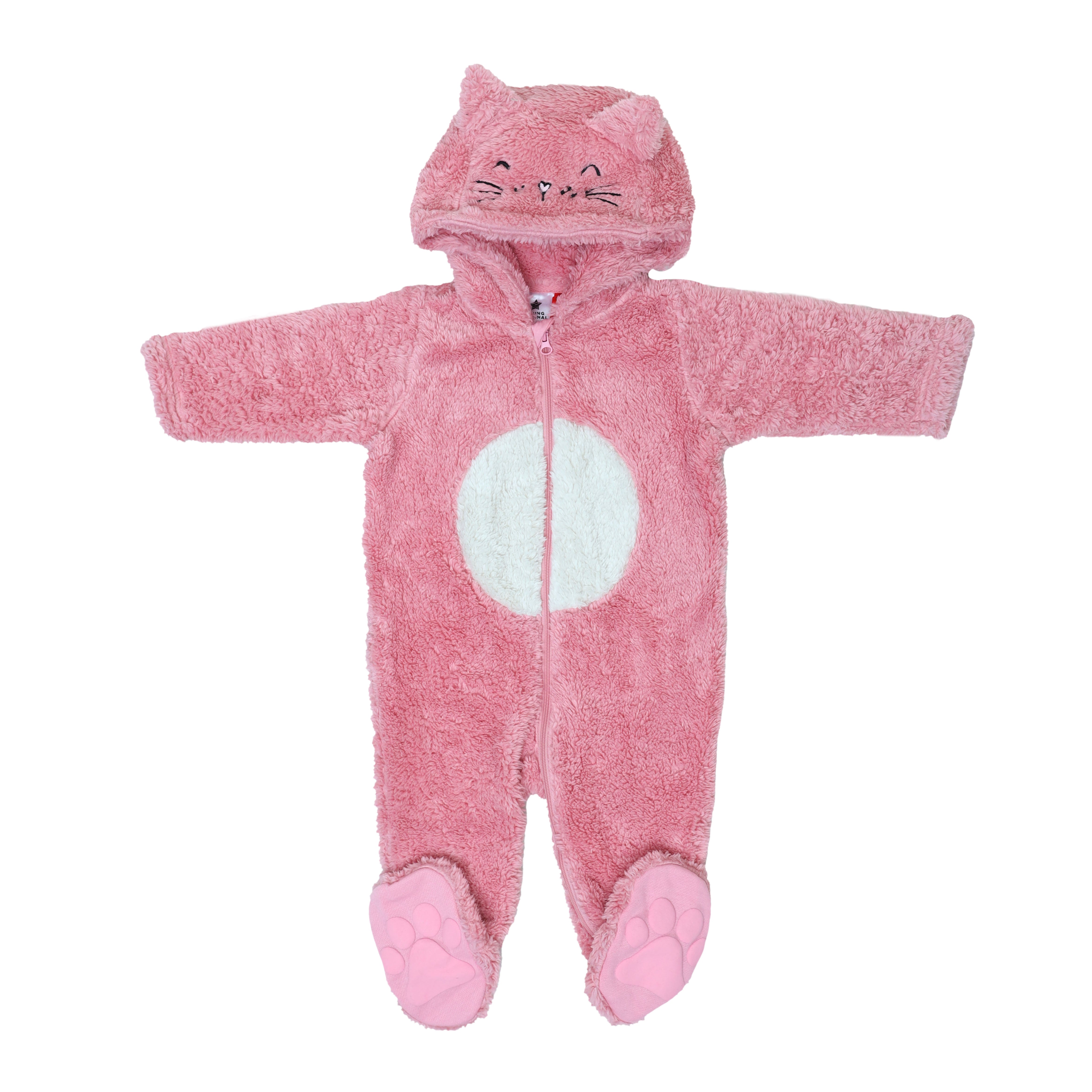 YNG Original Cat Embroided Hood Warm Fluffy Sherpa Pink Romper 13337