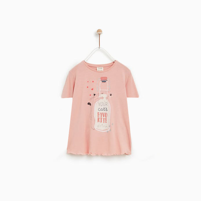- ZR Glitter Cat's Favorite Drink Tea-Pink Top