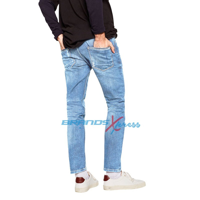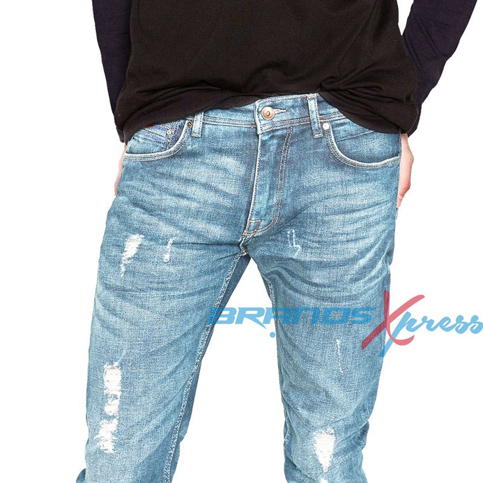 ZR Man Light Blue Ripped Stretch Denim Skinny Fit