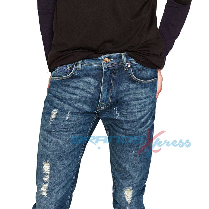 ZR Man Mid Blue Ripped Stretch Denim Skinny Fit