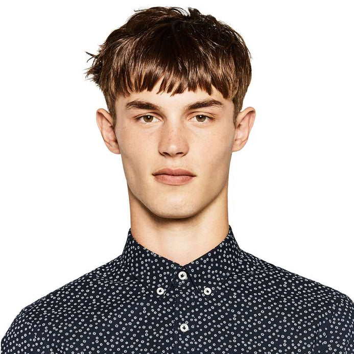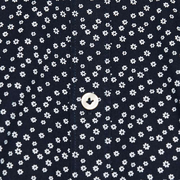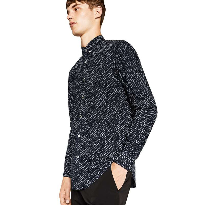 - ZR Man Printed Long Sleeve Oxford Navy Blue Slim Fit Shirt