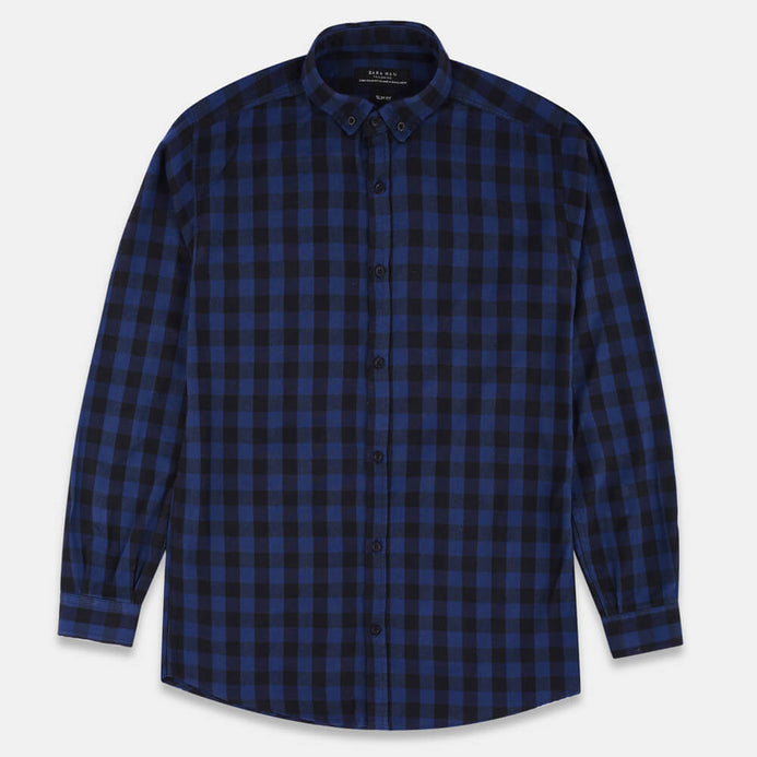 - ZR Men Blue And Black Check Shirt 968