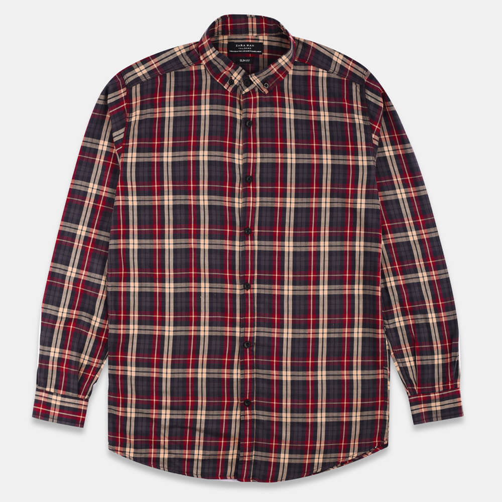 - ZR Men Slimfit Red Check Shirt 965